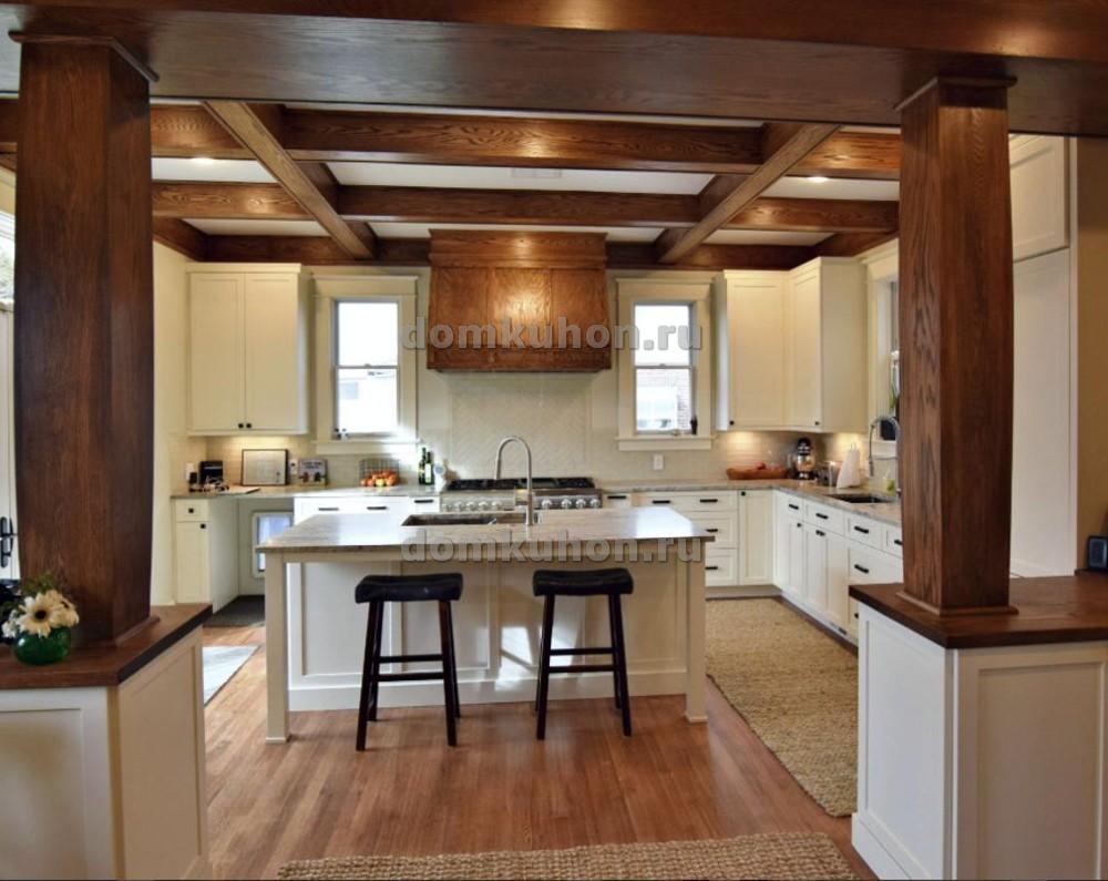 Откройте для себя кухню "Орегон" — где классический стиль встречается с современным удобством. Величественные деревянные балки и столбы в темных тонах в сочетании с кремовыми шкафами придают этому пространству тепло и изысканность. Центральное место занимает остров с удобными барными стульями и элегантной столешницей, идеально подходящий для утреннего кофе или вечернего бокала вина. Кухня "Орегон" — это не просто место для приготовления пищи, это сердце вашего дома, где будут собираться семья и друзья на многие годы.